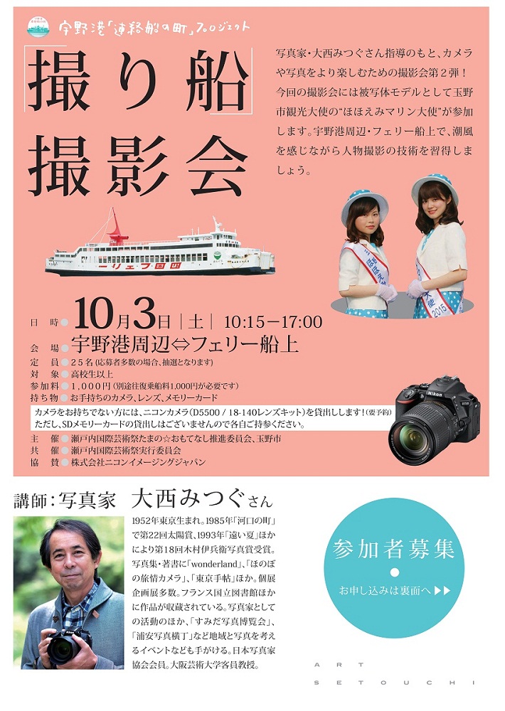 宇野港周辺やフェリー船上での人物撮影を主とした技術を講師いただけます。