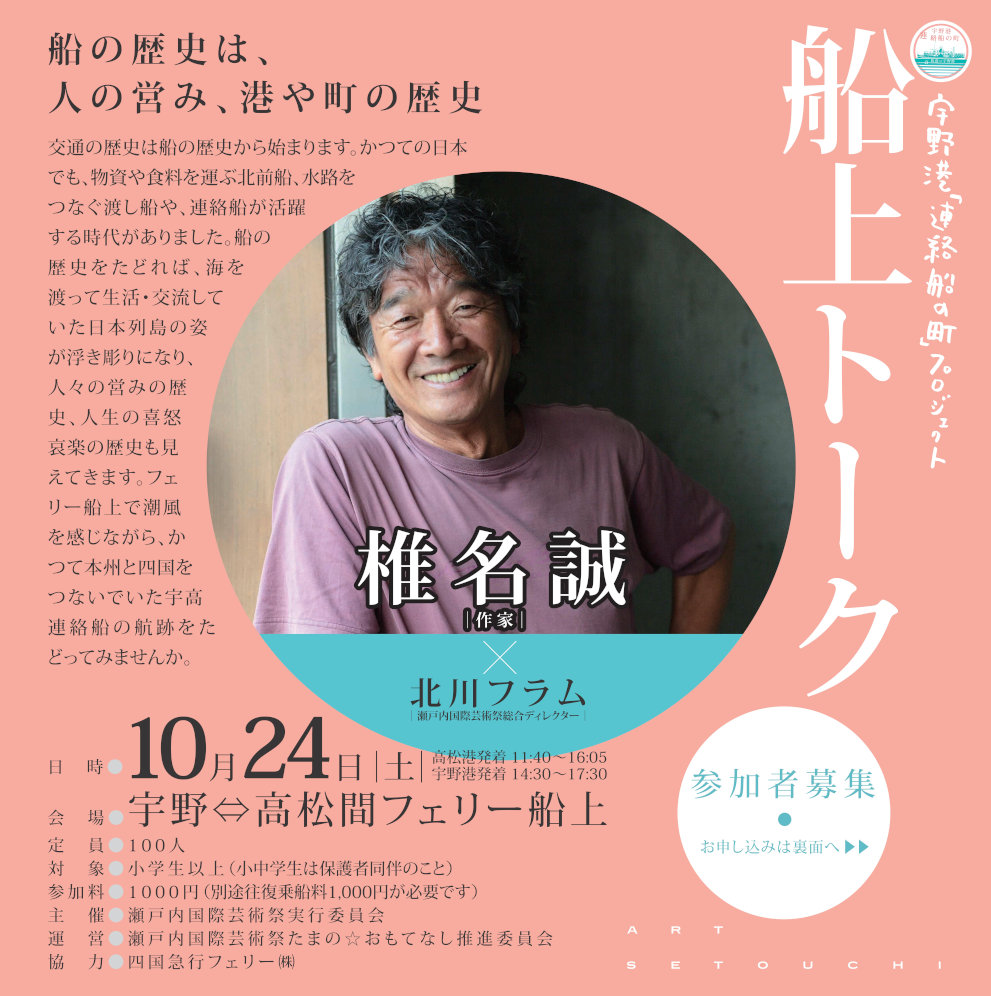 当日はゲストとして作家の椎名誠さん,瀬戸内国際芸術祭総合ディレクターの北川フラムさんをお招きしてのトークイベントを行います!